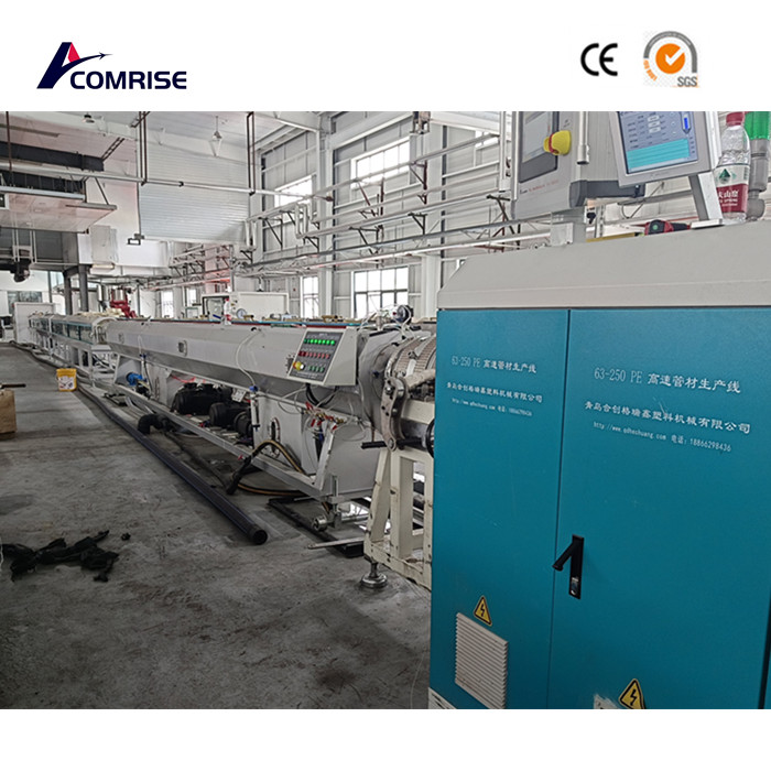 I henhold til kundens specifikke krav producerer Comrise Machinery den 110 mm HDPE -rørmaskine med Siemens PLC og berøringsskærm til styring af den komplette maskine. Der er også målervægt Auto Control System. Denne enhed garanterer PE -røret med nøjagtig vægtykkelse efter behov. Ekstruderen er SJ65/33 med 55 kW AC -motor.