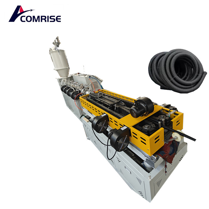 Comrise Plastic Single-Walled Corruger Pipe Production Line er uafhængigt udviklet af vores fabrik. Ved at bruge gear til at køre formen opnår produktet vandcirkulationskøling, hvilket sikrer højhastighedsproduktion og smukke og glatte indre og ydre rørvægskruger. Det endelige bølgede rør bruges til avancerede biltråde, engangs hookah-rør og elektriske ledninger. Produktionshastigheden for højhastighedsmaskiner kan nå 20-35 meter pr. Minut.